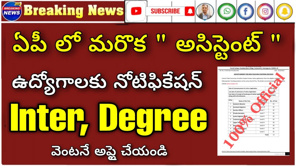 AP లో మరొక అసిస్టెంట్ ఉద్యోగాలకు నోటిఫికేషన్ |™AP Tribal University Jobs | Apply Now October 16, 2022October 16, 2022 DIVYA Click Below link to Apply 👇👇👇👇👇👇 Download Thank you for visit Please share