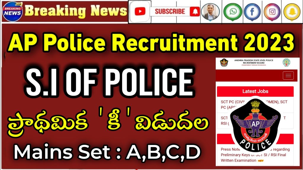 ఆంధ్ర ప్రదేశ్ పోలీస్ డిపార్ట్మెంట్ ఇటీవల కండక్ట్ చేసిన ఎస్ఐ ఉద్యోగాలకు సంబంధించి ప్రాథమిక కీ విడుదల చేయడం.