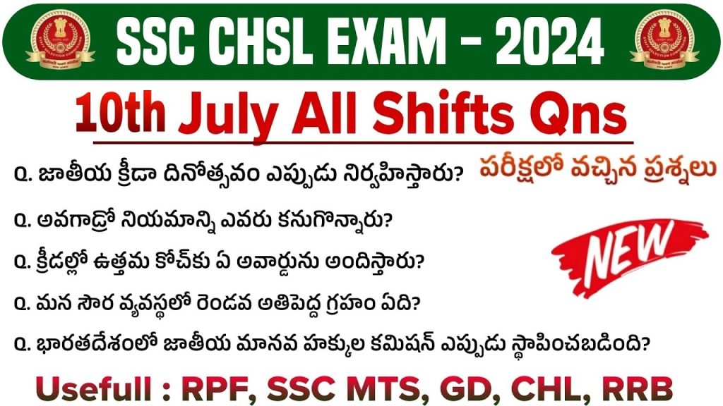 SSC CHSL Exam paper 10th july-2024 🔷SSC CHSL Exam question paper 10th july 2024 Shift-1&2 Click To Read More
