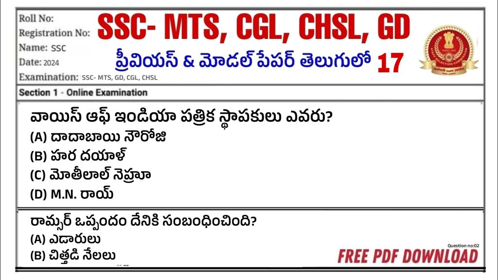 ssc mts model paper in Telugu 2024| ssc mts previous paper in Telugu