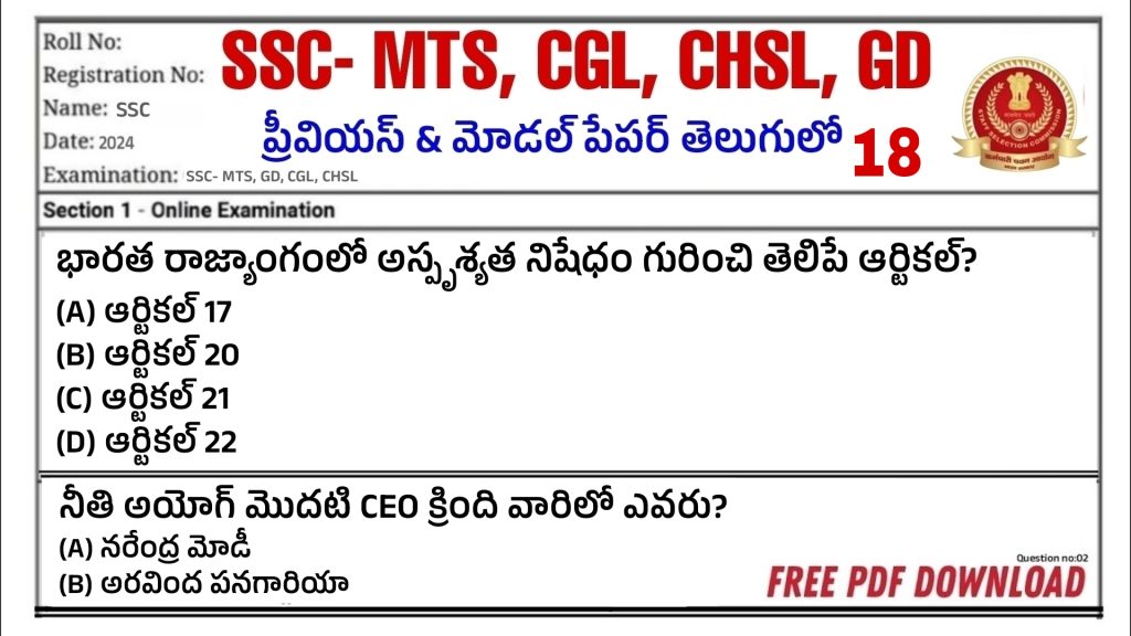 SSC – MTS – CHSL – CGL- GD Model papers -24 ★ Download free pdf Click To Read More
