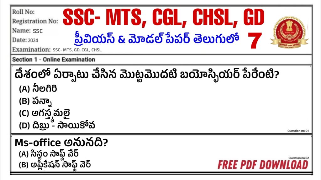 🔷SSC – MTS – CHSL – CGL- GD Model papers -26 🔷 Download free pdf Click To Read More